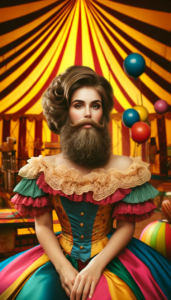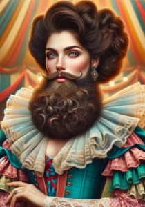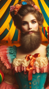 “The Shady Lady,” born Miranda Fontaine, is a captivating bearded lady and performance artist, celebrated for her striking appearance and magnetic personality. A cherished icon in the circus and entertainment industry, she brings an enchanting, mysterious aura to every event she graces. Based in New Orleans but traveling widely, The Shady Lady specializes in adding a unique visual effect and an unforgettable presence to parties, corporate events, and avant-garde performances.